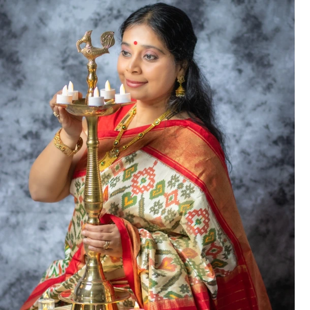 Vijayasanthi Pilavadian is a Lead Software Architect at a multinational corporation and a passionate Bharatanatyam dancer, performer, and mentor. Having learned Bharatanatyam in her childhood, she rekindled her love for the art after a long hiatus, training in the Kalakshetra style at NKAPA. Under the esteemed mentorship of Guru Smt. Sivanuja Balaji, she has had the privilege of performing at renowned venues, including Fox News Television, the Rotary Club of Edina, the Hindu Temple of Minnesota, the Minnesota Tamil Sangam, and the Ordway Center for the Performing Arts.