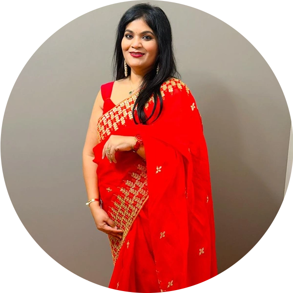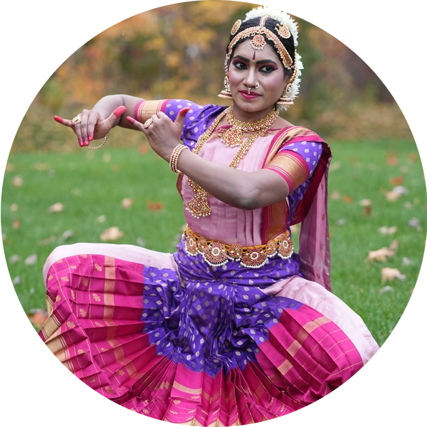 Meenakshi Shunmugam is a passionate Bharatanatyam dancer and a skilled IT Program Manager by profession. From an early age, Meenakshi discovered her love for dance, performing folk dances at a variety of events, including the prestigious Indian Republic Day celebrations. Her initial experiences sparked a deeper connection to the art form, leading her to pursue formal Bharatanatyam training.